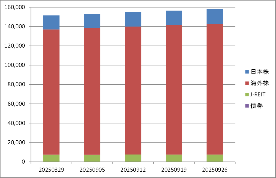 運用全体としては、今週は米国株が不調だったものの、日本株、REITが好調に推移したことに加え、為替レートがドル高になったことで円換算でのプラス影響が大きかったことから、資産合計では運用額が増加しました。