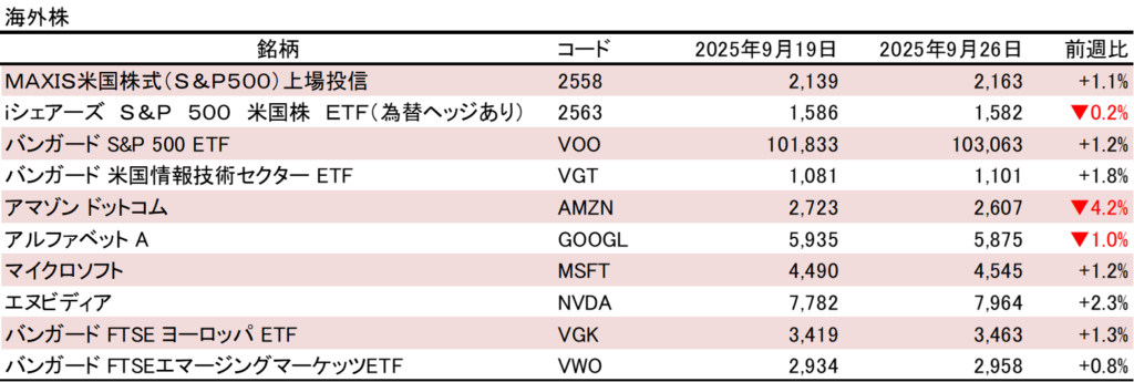 海外株は、主力のS&P500インデックスETFが大幅に続伸しました。