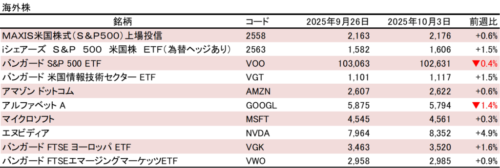 海外株は、主力のS&P500インデックスETFが反落しました。