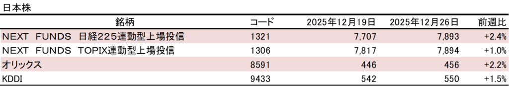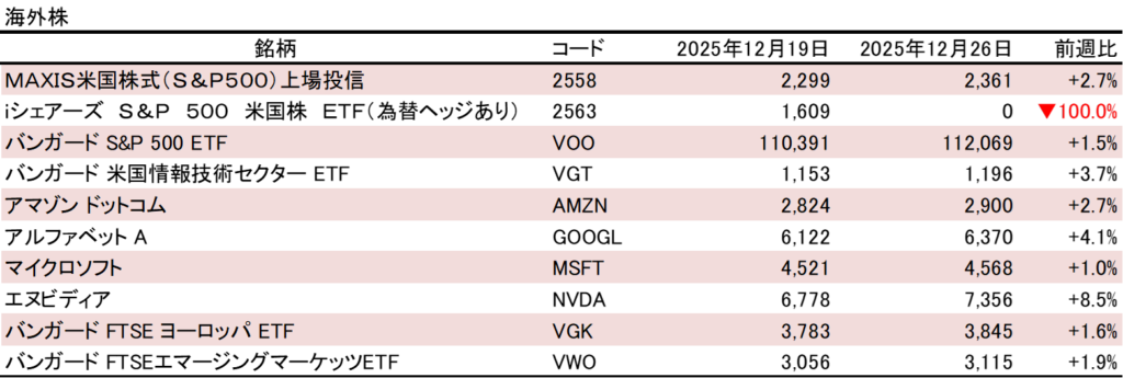 まだ2025年内は最終週がありますが、週末としてはこれが最後ですので、まずまず高い水準での終値となり、一安心です。