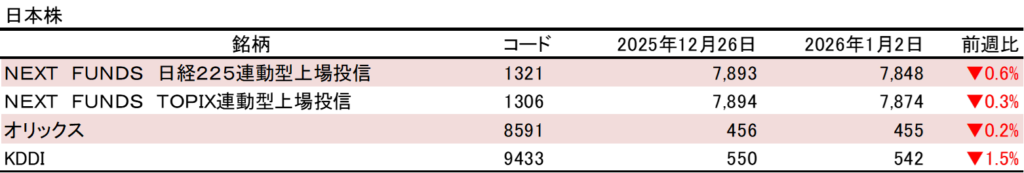 次週から本格的に2026年がスタートしますが、引き続き、米国ハイテク関連の値動きがどうなるかによって、この先の日本株の相場にも影響が続きそうです。