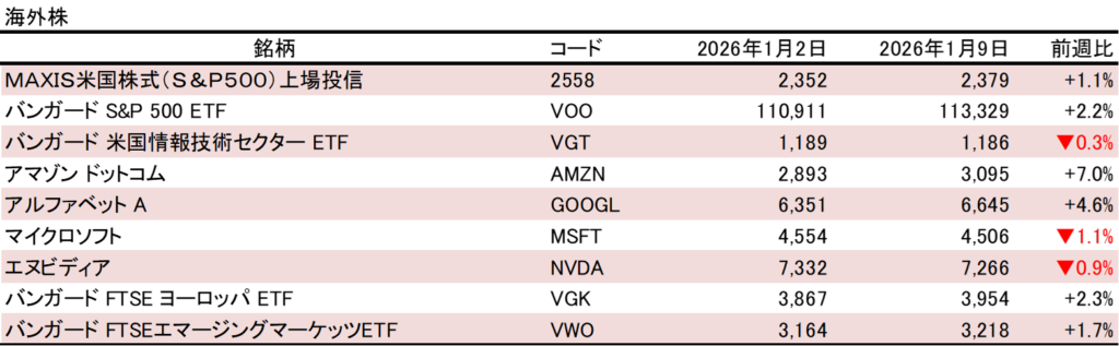 【第249回】2026年1月9日時点の運用実績(前週とは打って変わって絶好調の展開。米国によるベネズエラ攻撃は不安材料ですが、株価はむしろ上昇。長期保有推奨派としては、ただ見守るのみです。)