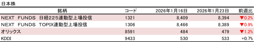 日本株は、今週は日経平均株価が前週から反落し、53,800円台に下落しました。