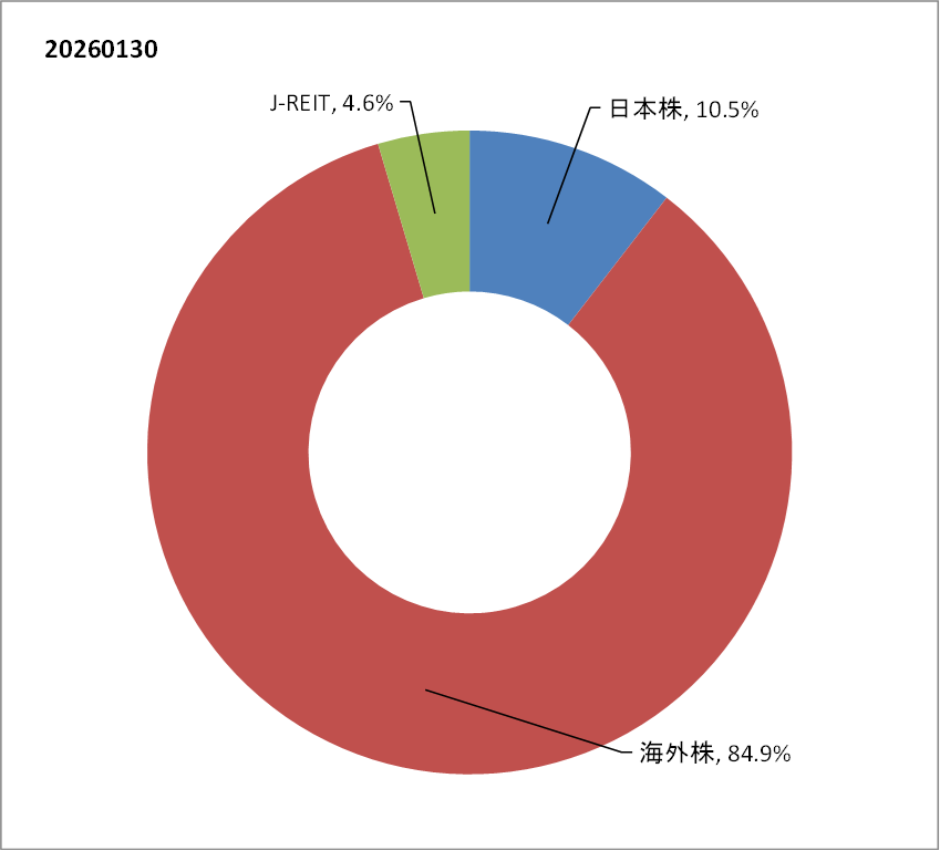 ここから相場の急落も覚悟しつつ、当面は日経平均株価47,000円あたりに落ち着くのではないかと見込んでいますが、長期保有目線での上昇も期待し、ポートフォリオにおいても日本株の比率は現状維持とします。