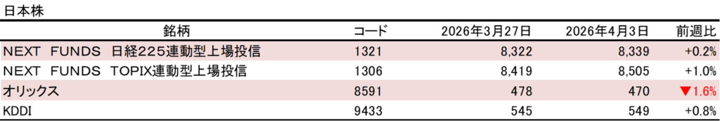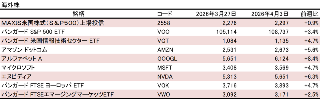 今週は入れ替えや生活費の取り崩しに伴う大きな変動はありませんでした。