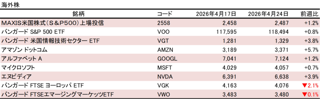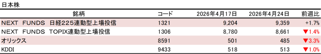 今週は入れ替えや生活費の取り崩しに伴う大きな変動はありませんでした。